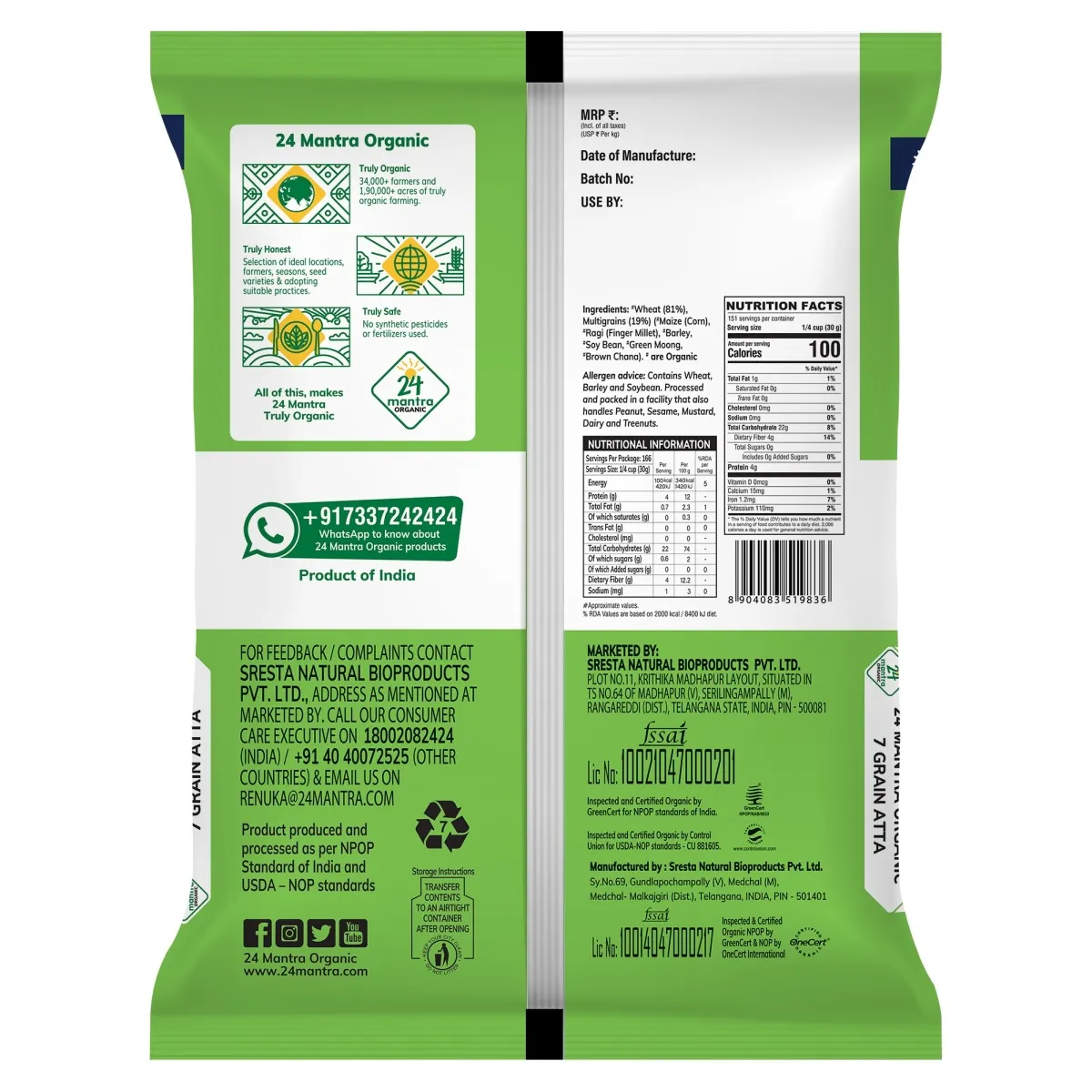 Wheat, Barley, Maize, Soybean, Ragi, Green Moong, Brown Chana