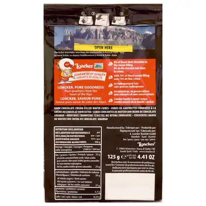 Loacker Quadratini Dark Chocolate Wafer Cookies are bite-sized crispy wafers that come with indulgent hints of 8% dark chocolate. This adds the perfect bitterness to the luscious layers of cream, thus making it a must treat for all dark chocolate lovers!