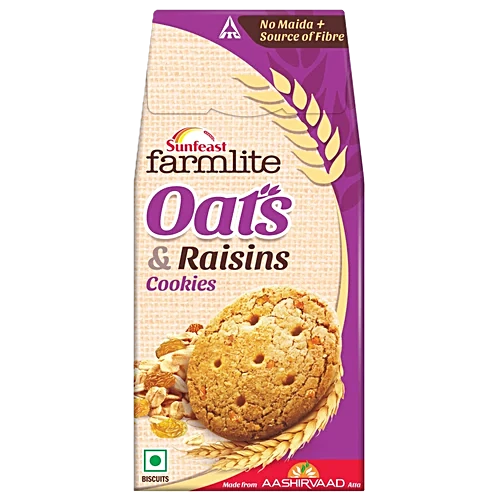Farmlite Oats & Raisins is a range of wholesome biscuits made from the grains sourced from the finest farm of India. Along with the goodness of grains, it is packed with super healthy and tasty ingredients like wheat raisins that provide balanced nutrition along with a rich tasty experience. A perfect cookie for your everyday chai moments or those sudden hunger pangs.