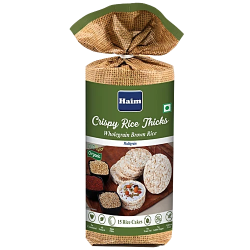 Haim Crispy Rice Thicks cultivates that natural goodness of nutritionally rich Wholegrain Brown Rice for a quick and easy option. Our rice cakes are organic, gluten-free and are less than 35 cal/cake. Being high in fibre our rice cakes provide long-lasting energy compared to white rice and other refined grains. Aside from physical health, rice cakes also have benefits for your emotional wellbeing, as they are known to regulate the mood. Eating wholegrain brown rice produces the neurotransmitter called serotonin, which can improve your mood. They are great for kids as they are crunchy, easy to chew, they become perfect partner with fruits, vegetables and spreads. Rice cakes are also part of the diet of people with fitness goals as they have complex carbs, very less calories and high fibre, with all the minerals and vitamins of natural grains. They are great for Pre and Post workout, for both fat loss and muscle building diets, have it with peanut butter and banana for that ultimate diet food.