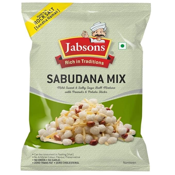 FASTING FRIENDLY SNACK – Made with vrat-approved ingredients like sabudana, peanuts, and potato sticks; seasoned with rock salt for ideal consumption during Navratri and religious fasts.