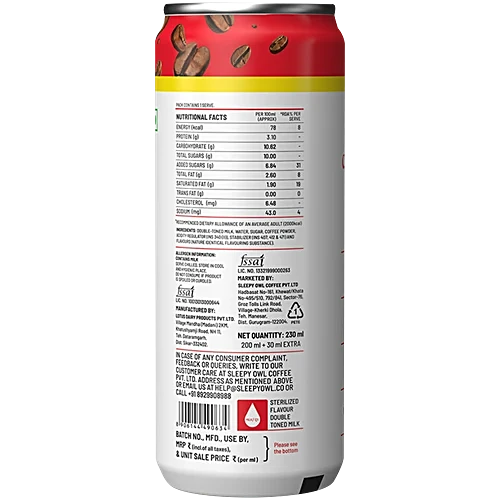 Sleepy Owl Classic Cold Coffee is a signature product containing real milk and a little sugar. The coffee used to prepare this amazing drink is sourced from the rich farmlands of Chikmagalur. The brand uses Grade-A Arabica coffee and care is taken to keep the true flavours intact. It is deliciously smooth and refreshing.