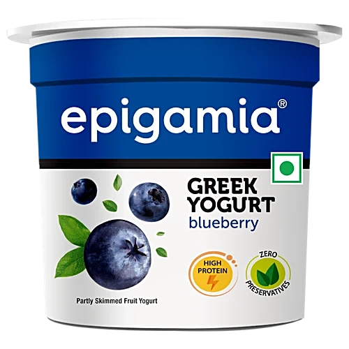 Savour the creamy delight of Epigamia Greek Yogurt in Blueberry flavour. Crafted with rich Greek yoghurt and real blueberry pieces, it delivers a perfect balance of tanginess and sweetness. Ideal for a refreshing snack or a healthy breakfast option. Enjoy the blend of smooth texture and vibrant berry taste with every spoonful.
