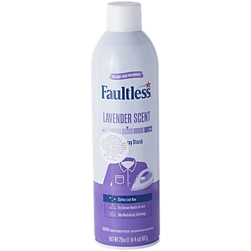 Faultless Fresh Lavender Scent Heavy Starch suggests a fresh flowery fragrance that leaves shirts looking additionally crisp and professional. With the button nozzle, a flat spray is laid on the piece of clothing, avoiding block. Use on all washable fabrics, except those labeled “dry clean only.” Let Faultless provide you with that fresh look all day!