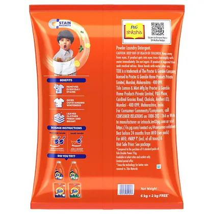 Tide Detergent Powder- Lemon & Mint, 6+2Kg