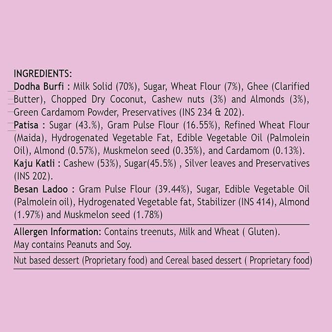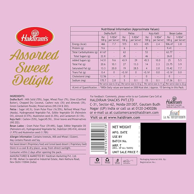 Haldirams Assorted Sweet Delight 450g, Savour The Variety of Indian Sweets (Contains Kaju Katli, Dodha Burfi, Patisa, Besan Ladoo)