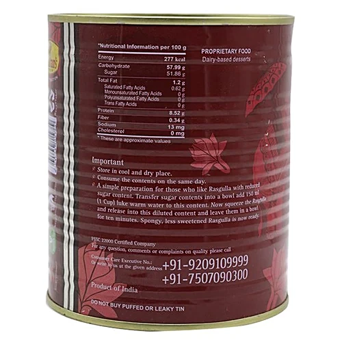 Rasgulla is a syrup-based dessert that has a soft and spongy texture. A Bengali favourite, this is a popular Indian sweet dish. Haldirams is known for recreating the magic of several traditional sweets and savouries. The Rasgulla is one of its high-quality products that comes packed in a tin and is ideal for dessert time.