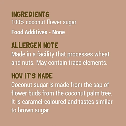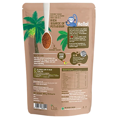 Made from high-grade sap of flower buds of coconut palm trees. Unrefined, unprocessed, and with no additives. An excellent natural replacement for processed, refined white sugar and brown sugar. Use as a substitute for processed sugars in a 1:1 ratio. Low GI – In the Glycemic Index chart, coconut sugar ranks just 35, while regular table sugar ranks between 60 and 75. Choose the healthier sugar. Best used in porridge, cereals, milkshakes, halwa, kheer, pancakes, cakes, homemade sweets, or with anything you would like to sweeten. Made with love by two mothers for every member of your family.