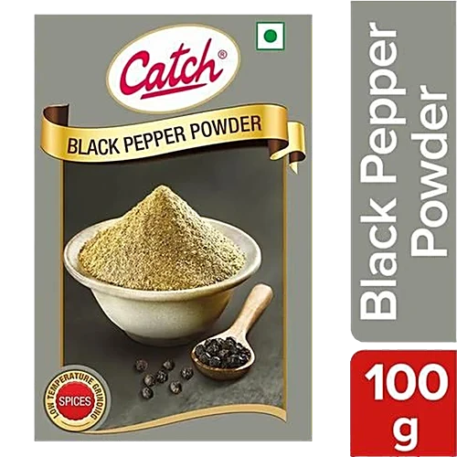 Catch Black Pepper Powder brings wholesome spicy goodness to every dish from your kitchen. The high piperine content, bold quality, and natural sundried process whole black peppercorns are sourced from Chikmagalur, Coorg and Sirsi in Karnataka, and Idukki, Kottayam and Alleppey in Kerala. Its fresh taste and aroma can bring zest to any dish from soups and salads to more eclectic recipes. Black Pepper powder is used as a common seasoning ingredient to add a punch of spiciness to any dish. Excellent natural remedy for cold.