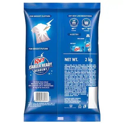 Keep clothes looking fresh and clean with Rin Detergent Powder that ensures tough stain removal from your clothes. This detergent powder is suitable for both your whites and colored clothes. It removes dirt from clothes, thereby removing dullness from them and leaves a pleasant fragrance.