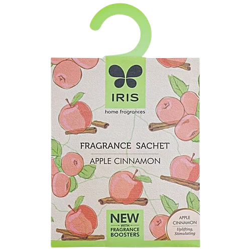 IRIS presents Fragrance Sachet, Apple Cinnamon. The vermiculite powder in the packet absorbs the aromatic essential oil to release fragrance in the air. The sachets last for 25 to 30 days under normal ambient conditions, when not physically tampered with. Make sure they don’t tear or dampen, as they will lose their potency.