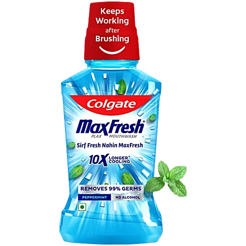 Colgate Plax Peppermint Fresh mouthwash removes over 99% of germs that cause bad breath and cavities, giving you a fresher and cleaner mouth than brushing alone. It has an extra refreshing peppermint flavour.This mouthwash contains no alcohol (non-alcoholic) hence does not cause any burning sensation when you use it. Yet it removes 99% germs instantly. You will experience an instant blast of freshness and 10X longer cooling sensation compared to brushing alone. This mouthwash gives you 24/7 control over bad breath with regular use. How to use: Fill the cap to its line (20ml). Rinse mouth with mouth wash thoroughly for 30 seconds, gargle and expel. Do not swallow. This mouth wash can be used by both men and women When to use: After brushing, An effective mouth freshner for your post meal needs. Colgate is India’s most trusted oral care brand. As a trusted partner, we are committed to doing business with integrity and respect for all people and the world around you. Colgate offers quality oral care products, including toothpastes and toothbrushes,as well as expert dental health information.