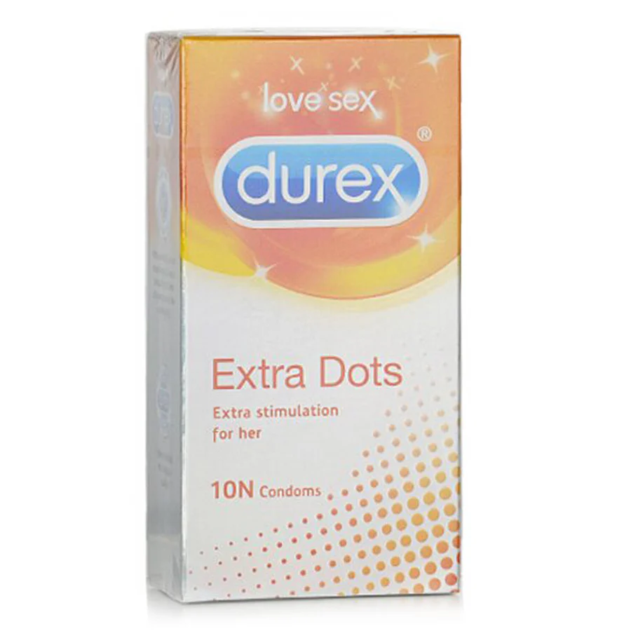 Width 53mm DOTTED FOR ENHANCED STIMULATION ? Durex Extra Dotted condoms have a distinct texture of raised dots, designed to increase stimulation for you and your partner 10 LUBRICATED & STRAIGHT WALLED CONDOMS ? Transparent, natural latex condoms shaped with a teat end to be easier to put on and provide a better fit WARNING: Keep the product away from children. DO NOT expose the product to humid places, direct UV or sunlight for an extended period.