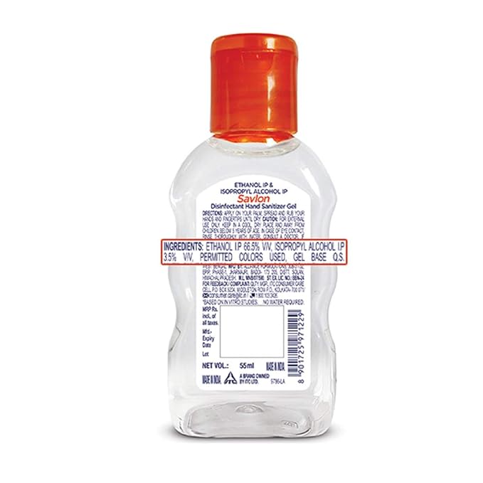 Just 1 drop of Savlon Hand Sanitizer kills 99.99% germs. The 55ml bottle comes in the gel format and provides protection on-the-go. Basis in-vitro antimicrobial action.