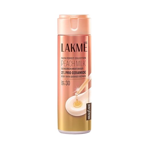 for nourishment + sun protection – try the Lakme Peach Milk SPF 24 lotion