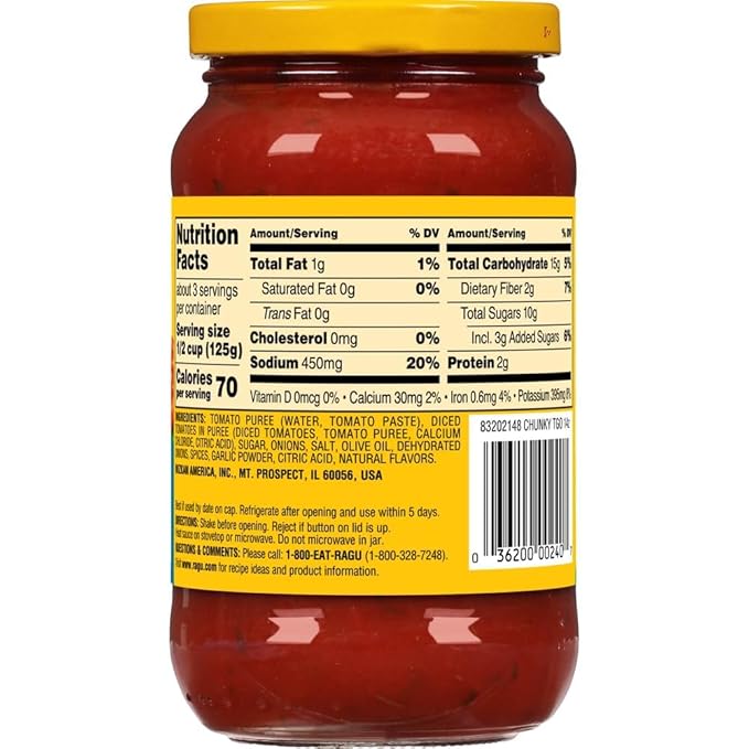 Contains two servings of veggies in every ½ cup of sauce