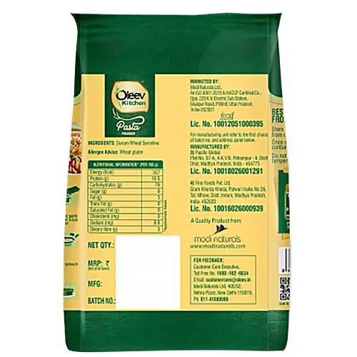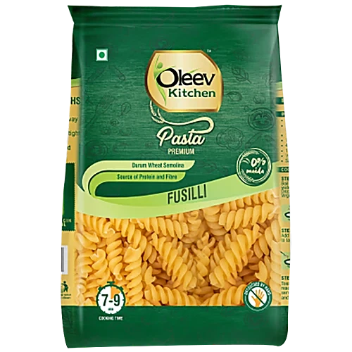 Oleev Kitchen Premium Fusilli Pasta is the perfect way to enjoy your favourite Italian meals at home. Oleev Kitchen Premium Fusilli Pasta indulges your health goals and your sense of taste. This Fusilli Pasta is made with semolina and water and is gluten-free. No preservatives or additives are utilised since we want to serve you pasta that is entirely natural. Due to its high protein and fibre content, our pasta further enhances the nutritional worth of your meal. Researchers claim that the carbs in pasta boost the creation of serotonin, which causes a happy mood. Explore a wide range of natural, premium quality products from Oleev Kitchen from spreads to pasta, oils and more only on Big Basket.