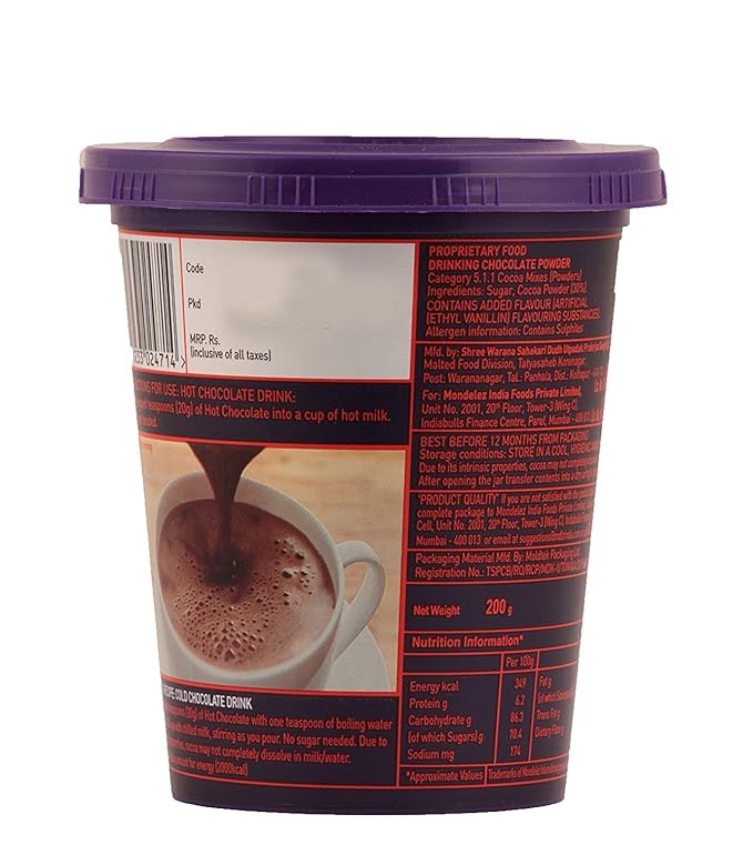 Hot chocolate is an instant hot chocolate beverage, which is intensely rich in chocolate and very creamy. Use this hot chocolate to make a cold chocolate milk shake or use it as add on, for your cold coffee in summer or a warm hot chocolate drink during winters.